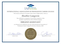 IAP Career College “Errand Assistant” Certificate,
