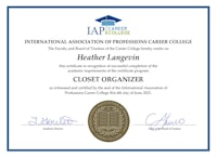 IAP Career College “Closet Organizer” Certificate, issued June 2021